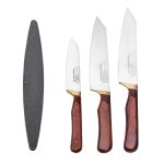 ست چاقو آشپزخانه 3 پارچه ثمین دست زنجان مدل SDZ22-111 به همراه سنگ چاقو تیز کن