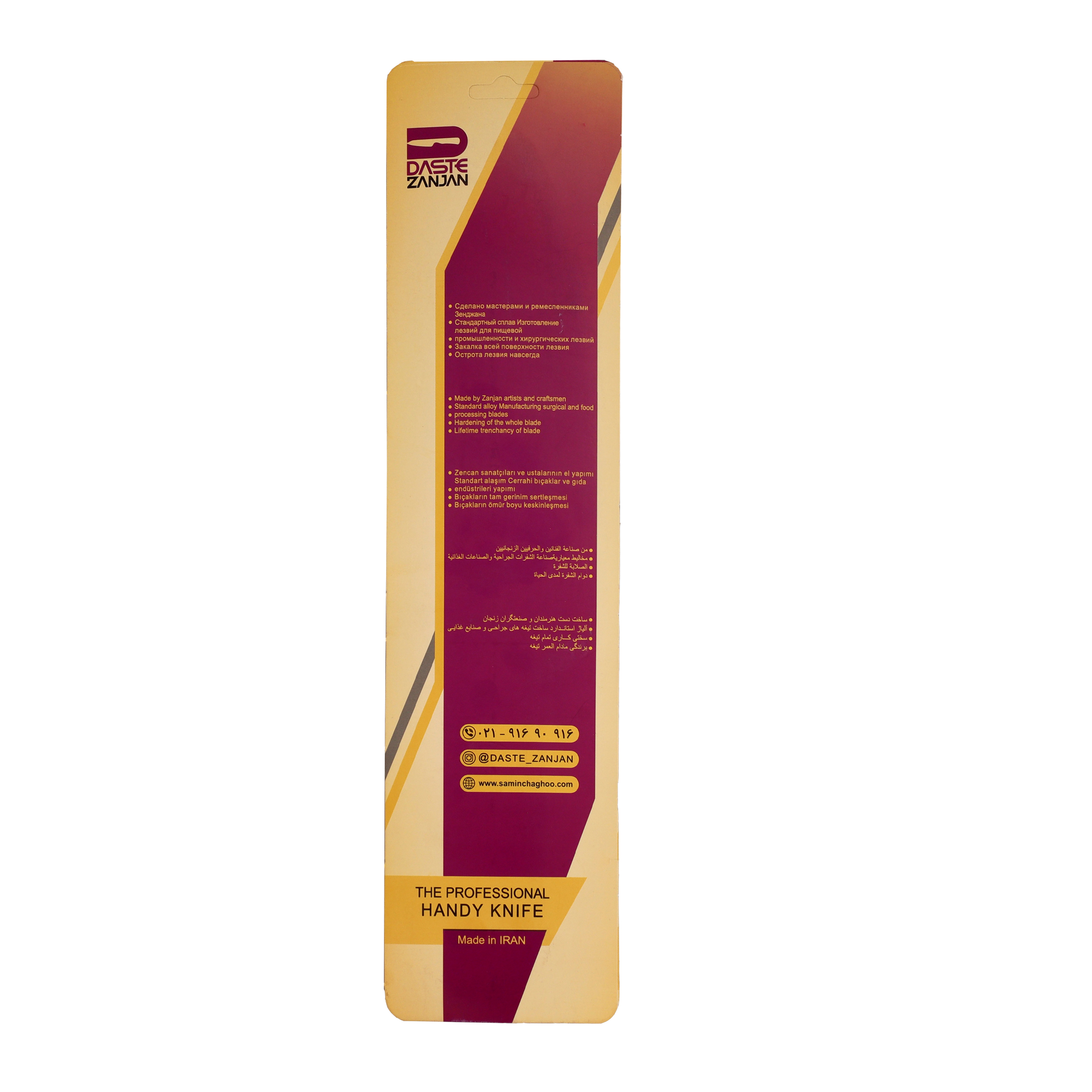 چاقوی سلاخی ثمین دست زنجان یکی از بهترین چاقوهای موجود در بازار است که حضور آن در هر آشپزخانهای لازم و ضروری است و شما میتوانید با این چاقو به انجام تمام وظایف آشپزی بپردازید. تیغه این چاقو دست ساز و از آلیاژ ساخت تیغهای جراحی می باشد که در عین تیز بودن، بیشترین کیفیت را برای بهره بری از یک چاقو را در اختیارتان قرار میدهد. این محصول بینظیر بسیار تیز بوده و باید زمان استفاده کردن از آن مراقب دستان خود باشید. از موارد استفاده از این چاقو میتوان به کارهای روزمره آشپزی مثل برش گوشت و مرغ یا پوست کندن و خرد کردن صیفیجات، اشاره کرد. برندگی خاص این محصول، سرعت عمل هر آشپز حرفهای و تازهکاری را به حداکثر میرساند. دسته این چاقوها جنسی سخت و محکمی دارد تا دست شمارا از هر آسیبی محفوظ بدارد. این محصول در کنار استحکام و برندگی، با زیبایی و ظرافتی که دارد به هر آشپزخانهای و در هر مکانی جلوه خاصی میبخشد.
