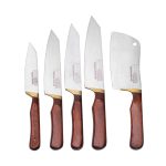 تصور کنید در آشپزخانه مشغول برش گوشت هستید، برای برش قسمتهای مختلف گوشت حتما با این مسئله مواجه شدهاید که اگر از چاقوی بزرگ یا کوچک استفاده کنید، ممکن است هر قسمت بهدرستی برش نخورد و در واقع، ناحیه گوشت و بزرگی یا کوچکی چاقو در برش اهمیت زیادی دارد! این موضوع زمانی اهمیت پیدا خواهد کرد که مجددا برای برش مواد دیگری مثل سبزیها با مشکل مواجه خواهید شد؛ به همین دلیل ابزاری برای برشی راحتتر توسط تولیدکنندگان ایجاد شده است. مجموعهای که در تصویر مشاهده میکنید شامل انواع چاقوی برش، ساطور است که هر کدام دارای مزایای و کاربرد گستردهای در پختوپز خواهند بود. سرویس چاقو آشپزخانه 5 پارچه ثمین دست زنجان مدل فاخر توسط ثمین دست زنجان به بازار ارائه شده است؛ این سرویس با جنس فولاد زنگ نزن آلیاژ ساخت تیغه های جراحی و دستههای چوبی آب گریز با کیفیت باعث شده تا برای استفاده محبوب باشد.